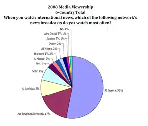 Depuis 2001, Al Jazeera est la chaîne la plus regardée dans le monde arabe[5]. Elle a une forte influence sur l'opinion publique[29],[30].