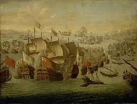 - L'escorte hollandaise est composée de cinq bâtiments : trois vaisseaux de ligne Muiderberg (50 canons), Gaesterland (46) et Reschermer (?) et les deux frégates Rotterdam (34) et Rozendaal (36) sous les ordres du capitaine Roemer Vlacq commandant du Muiderberg.