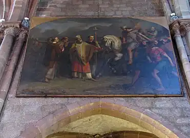 En 445–448, les Alains d'Eochar[13] répriment une révolte de bagaudes en Armorique pour le compte d'Aetius. S'il faut en croire la Vita Germani, l'évêque Germain d'Auxerre se serait placé sur leur route, saisissant même la bride du cheval d'Eochar pour l'empêcher d'avancer. Subjugués, les Alains se seraient alors retirés.