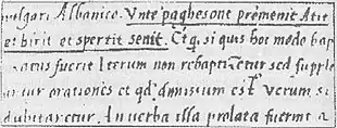 La formule du baptême de Pal Engjëlli, premier écrit en albanais connu.