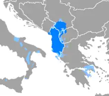 Il est parlé par presque 6,1 millions de personnes[1] et comprend les variétés de l'arberèche, de l'arvanitique, du guègue et du tosque.