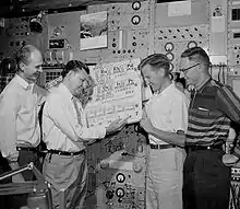 Après la guerre, Seaborg et Ghiorso rentrent à Berkeley où, avec leurs collègues, ils utilisent le « 60 Crocker cyclotron » pour produire des éléments de numéro atomique croissant en bombardant des cibles exotiques avec des ions d'hélium. Leurs expériences de 1949-1950 permettent de produire et d'identifier les éléments 97 (berkélium) et 98 (californium). En 1953, en collaboration avec Argonne Lab, Ghiorso et ses collaborateurs observent les éléments 99 (einsteinium) et 100 (fermium) ; identifiés par leurs radiations caractéristiques, dans les poussières collectées par avion lors de la première explosion thermonucléaire (Opération Ivy). En 1955, l'équipe utilise le cyclotron pour produire 17 atomes de l'élément 101 (mendélévium), le premier nouvel élément à être découvert atome par atome.