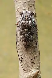 , lire en ligne [archive du ], consulté le ). - (en) David C. Marshall, Max Moulds, Kathy B. R. Hill, Benjamin W. Price, Elizabeth J. Wade, Christopher L. Owen, Geert Goemans, Kiran Marathe, Vivek Sarkar, John R. Cooley et Allen F. Sanborn, « A molecular phylogeny of the cicadas (Hemiptera: Cicadidae) with a review of tribe and subfamily classification », Zootaxa, vol. 4424, no 1, , p. 1–64 (ISSN 1175-5334, PMID 30313477, DOI 10.11646/zootaxa.4424.1.1, lire en ligne [archive du ], consulté le ).