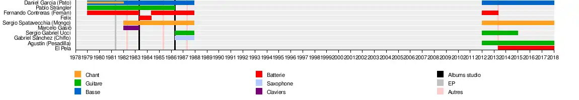 Le groupe, désormais rebaptisé Estado de Sitio[2], se compose de Pablo Strangler à la guitare, Fernando Contreras à la batterie, et Daniel García à la basse et au chant. Après deux mois de répétitions, le groupe enregistre cinq premières chansons, parmi lesquelles ils choisissent celles qui feront partie de leur première démo.