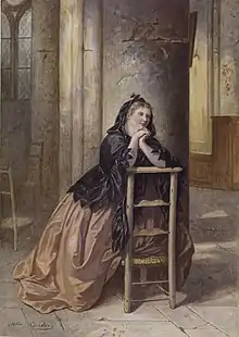 Femme agenouillé en prière.