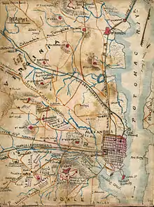 Suffisamment en arrière du front, les villes d'Alexandria et de Washington offraient non seulement une relative liberté, mais aussi du travail. Au cours de la guerre, l'armée d'occupation nordiste avait fait d'Alexandria un gigantesque dépôt militaire et un hôpital[13]. Selon une statistique, la population d'Alexandria avait atteint 18 000 habitants à l'automne 1863, soit une augmentation de 10 000 habitants en l'espace de 16 mois[13].