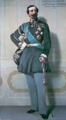 Le jeune Alfonso était également destiné à une carrière militaire et le 21 février 1816, à l'âge de onze ans, il entra à l'Académie royale militaire de Turin (Accademia Reale di Torino). En juillet de la même année, il est, selon la tradition, nommé page d'honneur du roi Vittorio Emanuele Ier de Savoie et le 15 mars 1820, il atteint le grade de cadet. En 1822, il aurait dû quitter l'Académie avec le grade de lieutenant, mais en raison des soulèvements de 1821, les promotions sont retardées et Alfonso est nommé lieutenant d'artillerie le 1er mars 1823[4].