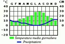| Température maximale moyenne (°C) | 12 | 13 | 16 | 18 | 23 | 26 | 27 | 29 | 26 | 23 | 16 | 10 | 17,2 |