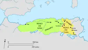 L'étymologie d'Algérie reprend le nom de la ville qui en est la capitale « Al-Djaza'ir » (الجزائر), qui signifie en arabe « les îles » (pluriel d'Al Jazira), soit un ensemble d'ilots avec lesquels a été constitué le port d'Alger ou sa jetée actuelle[18],[20], contrée berbère dont « la ville ayant été celle des Beni Mezghenna, qui la peuplaient », Djezaïr Beni Mezghanna[Note 5], du nom Djezaïr orthographié en arabe pour la première fois au XIe siècle par le polygraphe cordouan Al-Bakri, sous la forme de جزاير بني مزغنة, Djezaïr Beni Mezghenna[21]. Le terme d'îles viendrait des géographes musulmans médiévaux pour désigner la côte fertile du Maghreb, entre l'Ifriqiya et Tanger, coincée entre le vaste Sahara et la mer Méditerranée, apparaissant alors comme un chapelet d'îles montagneuses, Al-Jaza’ir fertiles. Cependant, El-Bekri distingue dans son ouvrage le nom Djezaïr de El-Djezaïr pour « îles », ce dernier terme désignant une localité située dans le désert libyen[22].
