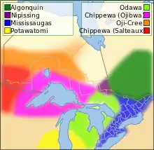 Culturellement et linguistiquement, ils sont proches des Outaouais et des Ojibwés[7], avec lesquels ils forment le groupe des Anichinabés (Anishinaabeg), qui signifie littéralement les « vrais hommes », et s'auto-désignent Omàmiwinini (pluriel : Omàmiwininiwak).