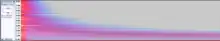 Dans l'algorithme de synthèse de sons de cordes pincées (algorithme de Strong inventé en décembre 1978), illustré ci-dessus, il peut être observé que le déclin d'une harmonique s'étale sur une durée approximativement proportionnelle au nombre d'échantillons d'une seule forme d'onde au cube, divisé par le numéro de l'harmonique en question au carré[7]. Une analyse mathématique plus détaillée est proposée par le papier de recherche, proposant notamment un calcul exact qui dépend de paramètres trigonométriques et est mis en relation avec le principe de transformée en Z, lui-même sous-jacent au plus classique filtre en peigne[8].