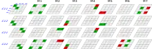 La force de l'algorithme de Strassen réside dans un ensemble de sept nouvelles matrices Mi qui vont servir à exprimer les Ci,j avec seulement 7 multiplications au lieu de 8 :