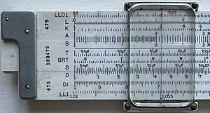 Les règles à calcul comprennent généralement des échelles à une, deux et trois décades permettant de déterminer directement les racines carrées et cubiques d'un nombre a. Pour la racine carrée, il s'agit du nombre sur l'échelle à une décade (A) situé face au nombre a sur celle à deux décades (D) ; pour la racine cubique, il s'agit du nombre sur l'échelle à une décade (A) en vis-à-vis du nombre a sur celle à trois décades (T).