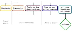Un arbre de jonction est une factorisation partiellement préconstruite. C'est un graphe de cliques construit de manière que le produit des fonctions de potentiels soit égal à la probabilité conjointe de l'ensemble des variables.