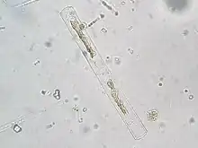 Elles sont elles-mêmes le support d'une importante florule de diatomées, parfois si dense qu'elle peut alors cacher la couleur du filament hôte (dans le cas par exemple des biofilms de Cocconeis, Gomphonema qui peuvent couvrir les Cladophora)[3] (Comme les characées et d'autres plantes, les algues filamenteuses sont souvent colonisées par des diatomées, mais aussi parfois par des chlorophycées ou des cyanobactéries[3].