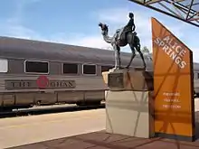 À l'origine, les transports britanno-australiens dans l'arrière-pays étaient assurés par des trains de chameaux, exploités par des immigrants des tribus Pathan de la frontière nord-ouest de l'Inde britannique de l'époque (l'actuel Pakistan), connus localement sous le nom de « cameleers » afghans basés à Hergott Springs, ou Marree (en) depuis 1917. De nombreux cameleers se sont installés à Alice Springs en 1929, lorsque le chemin de fer a enfin atteint la ville. Ils vivaient dans le quartier où se trouve aujourd'hui le conseil municipal et transportaient des marchandises depuis la tête de ligne jusqu'aux gares et aux colonies situées au nord. Une ruée vers l'or à Tennant Creek en 1932 a fait tourner les roues de l'économie d'Alice Springs jusqu'au début de la Seconde Guerre mondiale[18].