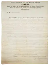 La loi de sédition (officiellement une loi pour la punition de certains crimes contre les États-Unis) rendait illégal de faire des déclarations fausses ou malveillantes sur le gouvernement fédéral[6]. La loi a été utilisée pour censurer les discours critiques à l’égard de l’administration Adams, y compris la poursuite et la condamnation de nombreux propriétaires de journaux jeffersoniens qui n’étaient pas d’accord avec le Parti fédéraliste. La loi n’étendait pas l’application aux discours sur le vice-président, car Thomas Jefferson était un opposant politique au Congrès contrôlé par les fédéralistes. Décrété le , avec une date d'échéance du .