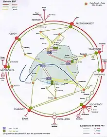 Les quatre postes haute tension (postes de transformation 63/15 kV)[8] sont situés :