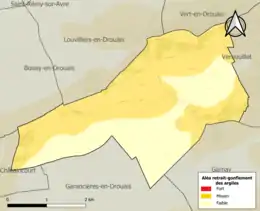 Le retrait-gonflement des sols argileux est susceptible d'engendrer des dommages importants aux bâtiments en cas d’alternance de périodes de sécheresse et de pluie. 59,9 % de la superficie communale est en aléa moyen ou fort (52,8 % au niveau départemental et 48,5 % au niveau national). Sur les 58 bâtiments dénombrés sur la commune en 2019, 45 sont en aléa moyen ou fort, soit 78 %, à comparer aux 70 % au niveau départemental et 54 % au niveau national. Une cartographie de l'exposition du territoire national au retrait gonflement des sols argileux est disponible sur le site du BRGM[18],[Carte 2].