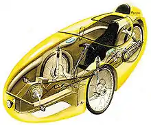 Il mesure 2,60 m de long et 0,82 m de large, possède un carénage en aluminium ou en fibre, et pèse nettement moins que le conducteur, selon le modèle de 30 à 42 kg (modèles à assistance électrique ou hybrides électro-musculaires)