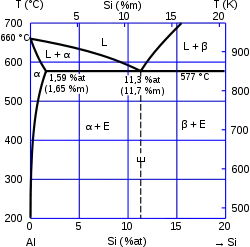 - On recherchait particulièrement les alliages proches de l'eutectique Al-Si (12,6 % m/m)