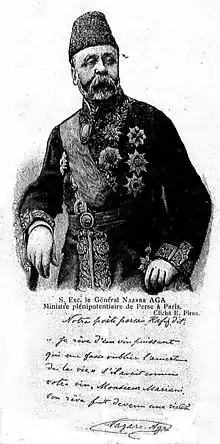 Un ambassadeur de Perse, nommé Askar Khan Afshar, fut envoyé à Paris[21]. Il arriva à Paris le et rencontra Napoléon le [14].