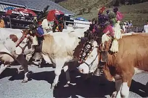 La montée aux alpages ou Almauftrieb vers la fête de la Pentecôte ne fait pas l’occasion d’une fête sauf en Suisse (poya ou Alpaufzug).