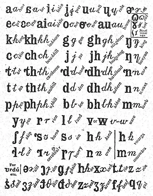 - (en) Joshua Knowles, « Romanic Letters for Indian Languages », The Journal Of The Royal Asiatic Society, vol. 44, , p. 751-752 (lire en ligne)