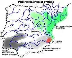 L'alphabet gréco-ibère est une adaptation directe d'une variante ionique de l'alphabet grec à la spécificité de la langue Ibére. Cette écriture est donc un alphabet et n'a pas le caractère distinctif des écritures paléo-hispaniques, qui présentent des signes ayant des valeurs syllabiques, pour les consonnes occlusives et des signes avec des valeurs de phonèmes uniques pour le reste de consonnes et de voyelles.