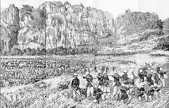 À l'heure dite, il traverse le Song Thuong. Il est reçu sur la rive opposée par une grêle de balles chinoises. Obligé de battre en retraite, il appelle le capitaine Maillard : « Tu vas, avec tes hommes, te tenir à l'arrière-garde. Tu ne me rejoindras que dans deux heures. » A 4 heures, Maillard rejoignit le gros qui avait repassé le fleuve et campait sur la rive droite, ramenant un tiers de ses hommes. Ce fut le combat de Hoa-Hoc.