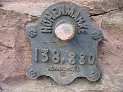 À proximité du col du Donon, la commune de Grandfontaine abrite l'un des vingt-trois points géodésiques du Réseau de référence français[21]. Le nivellement général de la France s'applique, et les altitudes sont données par rapport au niveau du marégraphe de Marseille. Pour des raisons liées à l'histoire, le niveau normal d'Amsterdam (Normalnull), a autrefois servi de référent altimétrique, ce que révèlent de vieilles plaques encore visibles.