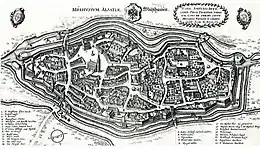 Géographiquement elle se trouve entre le massif des Vosges et le Rhin. Région de l'Europe rhénane, elle fait plus largement partie de l'espace culturel de l'Europe centrale et est historiquement une terre de langue germanique (alémanique et francique) avec des parties romanes (vallées welches, certaines communes du Sundgau). Malgré son identité forte, l'Alsace est une région cosmopolite[1], métissée[2] et fortement diversifiée sur le plan religieux[3]. La région historique sous l'Ancien Régime était subdivisée en trois entités : la Haute-Alsace[N 1], la Basse-Alsace[N 2] et la république de Mulhouse[N 3]. Cette dernière se lance dans l'aventure industrielle dès 1746[4] et vote sous la contrainte militaire sa réunion à la France en 1798.