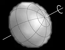 Ce qui la caractérise est sa rotation extrêmement rapide : il lui faut 7 heures 46 minutes pour effectuer une rotation[7], là où le Soleil met un peu plus de 25 jours. Altaïr tourne donc à son équateur à la vitesse de 314 km/s[7]. En conséquence, Altaïr est oblongue, aplatie aux pôles et renflée à l'équateur : son diamètre équatorial est au moins 22 % plus grand que son diamètre polaire[25]. L'aplatissement ε est égal à 0,220 ± 0,003, l'inclinaison i entre l'axe des pôles et la ligne de visée est égale à 50,7 ± 1,2° et l'angle de mouvement propre PA est égal à 301,1 ± 0,3°[7].
