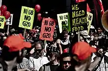 - (en) Here's a slogan for the G20 mob: What do we want? Free trade! - Boris Johnson, The Daily Telegraph, 23 mars 2009.