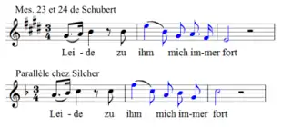 L'article discute à fond les correspondances avec l'adaptation la plus célèbre, faite par Friedrich Silcher. Voir aussi Exécutions et remaniements