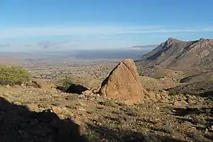 ![]() Gros rocher au sommet de la montagne Dou-Tawrirt, au village de Tighrassen, appartenant à la tribu Amanouz |