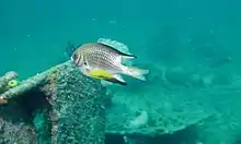 Amblyglyphidodon leucogaster, communément nommé Demoiselle à ventre jaune, est une espèce de poissons marin de la famille des Pomacentridae.