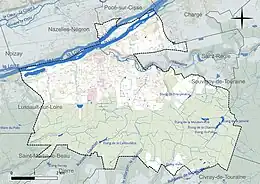 Le cours de la Loire s'insère dans une large vallée qu'elle a façonnée peu à peu depuis des milliers d'années. Elle traverse d'est en ouest le département d'Indre-et-Loire depuis Mosnes jusqu'à Candes-Saint-Martin, avec un cours large et lent. La Loire présente des fluctuations saisonnières de débit assez marquées. Sur le plan de la prévision des crues, la commune est située dans le tronçon du Val de Loire orléanais, qui court entre la sortie de Sully-sur-Loire (Loiret et la sortie de Nazelles-Négron[5], dont la station hydrologique de référence la plus proche est située à Blois. Le débit mensuel moyen (calculé sur 156 ans pour cette station) varie de 118 m3/s au mois d'août à 583 m3/s au mois de février. Le débit instantané maximal observé sur cette station est de 3 050 m3/s et s'est produit le , la hauteur maximale relevée a été de 5,05 m le [6],[7].