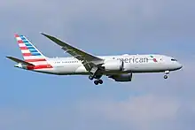 ![]() Boeing 777-200ER d'American Airlines arborant l'ancienne livrée. |