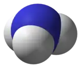 L'ammoniac est un composé chimique de formule NH3 (du groupe générique des nitrures d'hydrogène). Dans les conditions normales de température et de pression, c'est un gaz noté NH3 gaz[23]. Il est incolore et irritant, d'odeur piquante à faible dose ; il brûle les yeux et les poumons en concentration plus élevée.