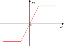 La linéarité d’un amplificateur correspond à sa capacité à garder constante la pente de la courbe donnant la tension de sortie en fonction de la tension d'entrée. Une limitation de linéarité vient de l’alimentation de l’amplificateur : la tension de sortie ne peut dépasser la tension d’alimentation de l’amplificateur. Lorsque cela arrive, on parle de saturation de l’amplificateur. La linéarité d’un amplificateur est aussi limitée par sa vitesse de balayage (ou slew rate) qui représente la vitesse de variation maximale qu’il peut reproduire. Lorsque la variation du signal d’entrée d’un amplificateur est supérieure à sa vitesse de balayage, sa sortie est une droite de pente , telle que :