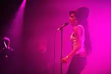 Amy Winehouse ([ˈeɪmi ˈwaɪnhaʊs][1]), née le à Londres et morte le dans cette même ville, est une chanteuse, autrice-compositrice-interprète et guitariste britannique, connue pour sa voix caractéristique rappelant celles de Dinah Washington, Sarah Vaughan ou encore Wanda Jackson. D'une manière générale, sa musique est un mélange de styles comme le jazz, le blues ou encore la soul.