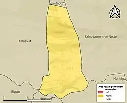 Le retrait-gonflement des sols argileux est susceptible d'engendrer des dommages importants aux bâtiments en cas d’alternance de périodes de sécheresse et de pluie. La totalité de la commune est en aléa moyen ou fort (44,5 % au niveau départemental et 48,5 % au niveau national). Sur les 100 bâtiments dénombrés sur la commune en 2019, 100 sont en aléa moyen ou fort, soit 100 %, à comparer aux 75 % au niveau départemental et 54 % au niveau national. Une cartographie de l'exposition du territoire national au retrait gonflement des sols argileux est disponible sur le site du BRGM[36],[Carte 3].