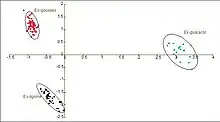 Comme pour le vin ou les jus de fruits, l’interprétation des résultats en termes d’origine (naturelle, synthétique, fraudé ou pas, etc.) est faite par comparaison du profil isotopique de l’échantillon analysé avec les paramètres isotopiques déterminés sur des bases de données de référence de produits d’origines connues. Toutes les origines de vanilline, dont les gousses de vanille, sont bien distinguées en utilisant les données de RMN du deutérium comme indiqué sur la figure 10.