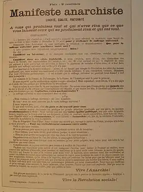 Cependant Thonar poursuit son projet de structuration de l'anarchisme. Pour clarifier les positions, il rédige un manifeste, Ce que veulent les anarchistes qui écarte d'entrée les nostalgiques de la propagande par le fait et les « originaux » non conformiste[13].