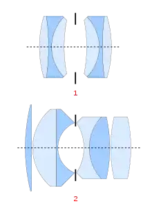 Le premier anastigmat a été mis au point par Paul Rudolph chez Zeiss en 1890. Il est constitué de deux doublets accolés, séparés par un diaphragme.