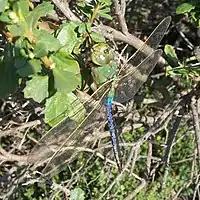 Mâle photographié en Californie, permettant de visualiser les caractères qui le distinguent de l'anax empereur européen.