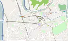 Au niveau du cours Berriat, d'Eybens et du cours Saint-André, les voies de la SGTE rencontrent celles de la compagnie PLM. Le croisement s'effectue à chaque fois à niveau.