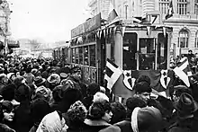 Si la Seconde Guerre mondiale interrompt ce remplacement, les tramways sont même réintroduits sur certaines lignes en raison des pénuries de pneus (Entre 1942 et 1946 sur le tour de ville et la ligne de La Sallaz et entre 1944 et 1945 les dimanches et fêtes sur la ligne de Pontaise), il reprend dès la fin du conflit[14]. Ferment ainsi en 1951 la ligne 20 (Place du Tunnel-Montheron) et en 1961 les tronçon de Saint-François à Prilly et Lutry des lignes 7 et 9[10],[3]. La ligne du Jorat (lignes 21 à 23) ferme en 1962[15] et l'ultime ligne, Renens-Saint-François-Rosiaz composée des tronçons restants des lignes 7 et 9, est fermée le , afin de permettre les aménagements routiers pour l'Exposition nationale suisse de 1964[16]. Dès , un an avant la fermeture de l'ultime ligne, la Société des tramways lausannois change de nom et devient les Transports publics de la région lausannoise, tout en conservant le sigle TL, nom qu'elle porte depuis lors[17].