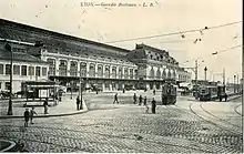 Le premier réseau de tramways de Lyon a été construit et exploité par la Compagnie des Omnibus et tramways de Lyon (OTL), fondée en 1879. Il totalise 43,653 km[5], répartis en 10 lignes à voie normale et à traction animale, desservant les communes de Lyon, Villeurbanne, La Mulatière et Oullins :